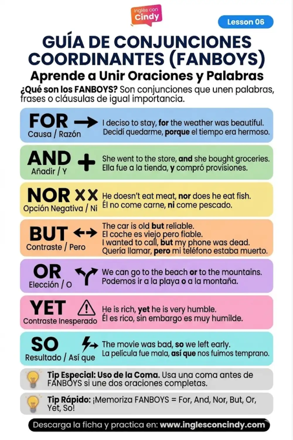 Resumen FANBOYS Inglés con Cindy